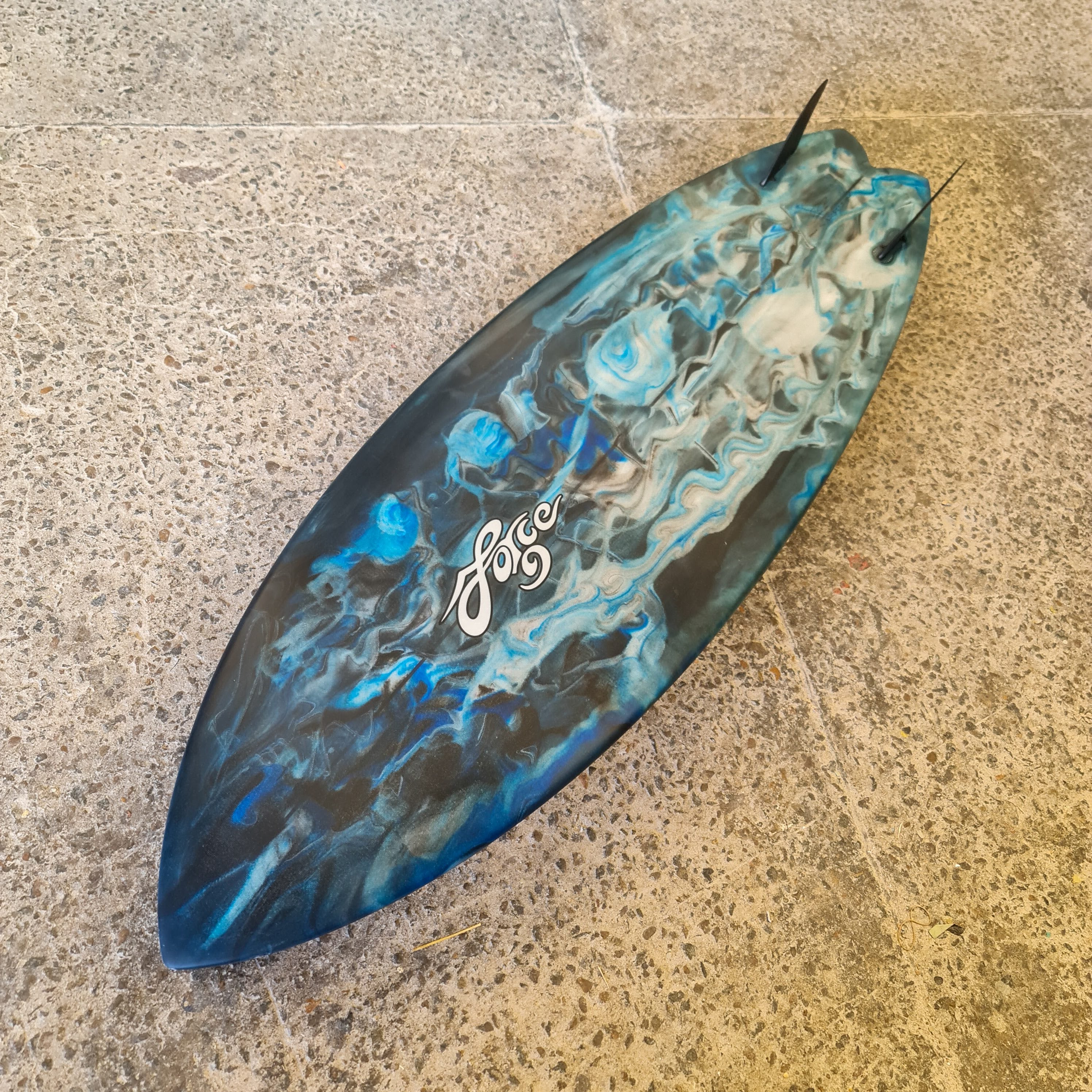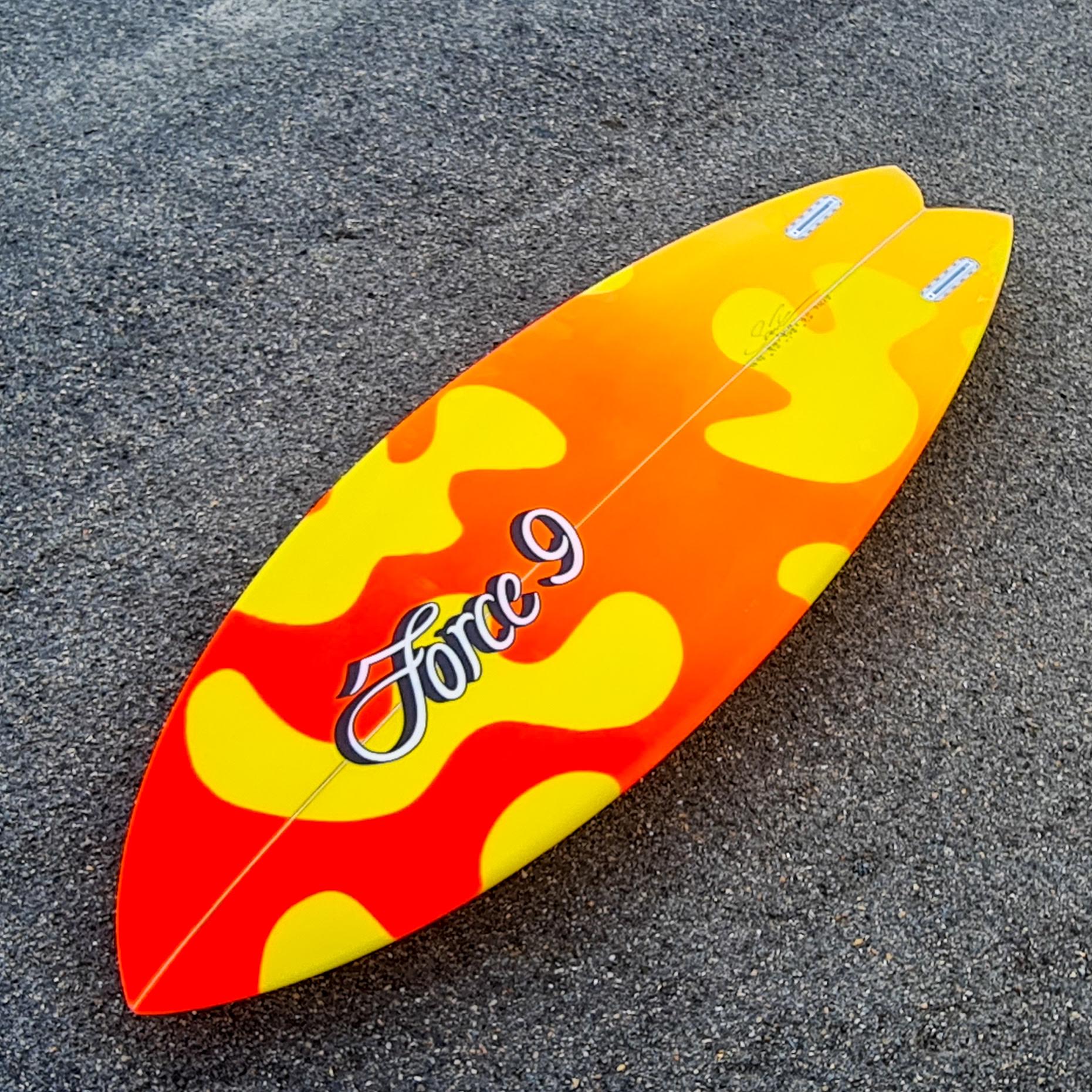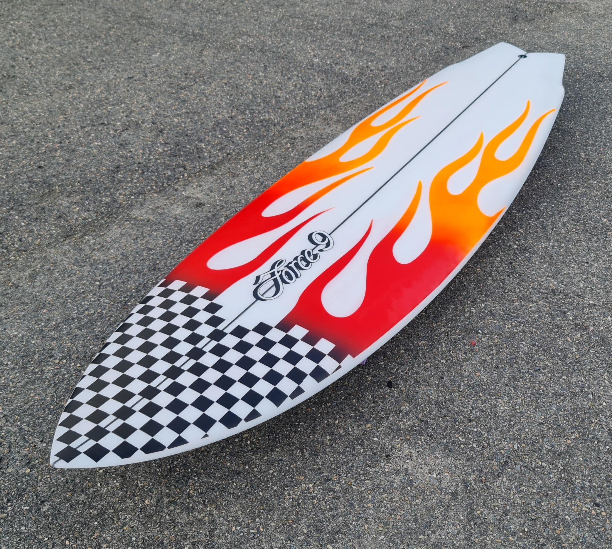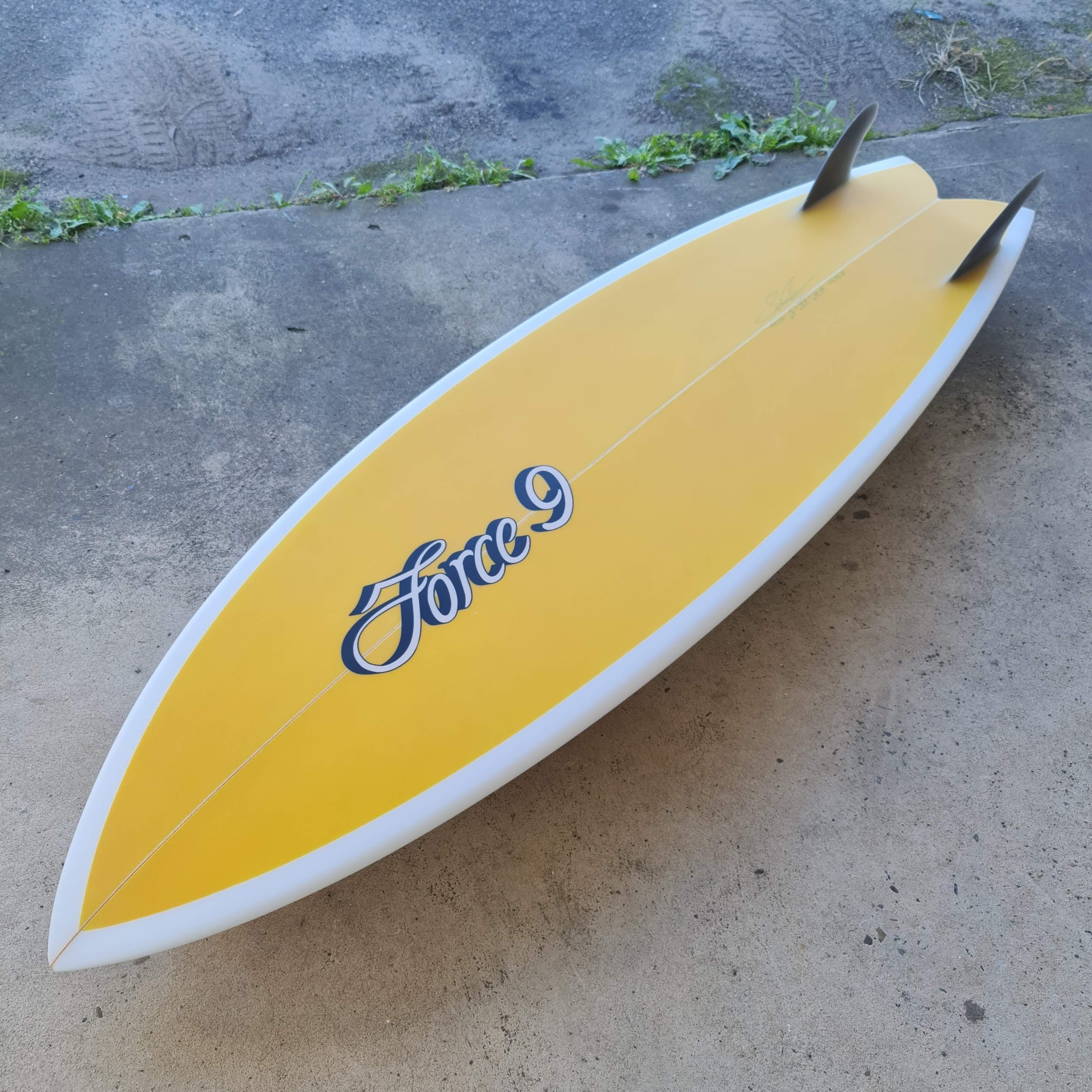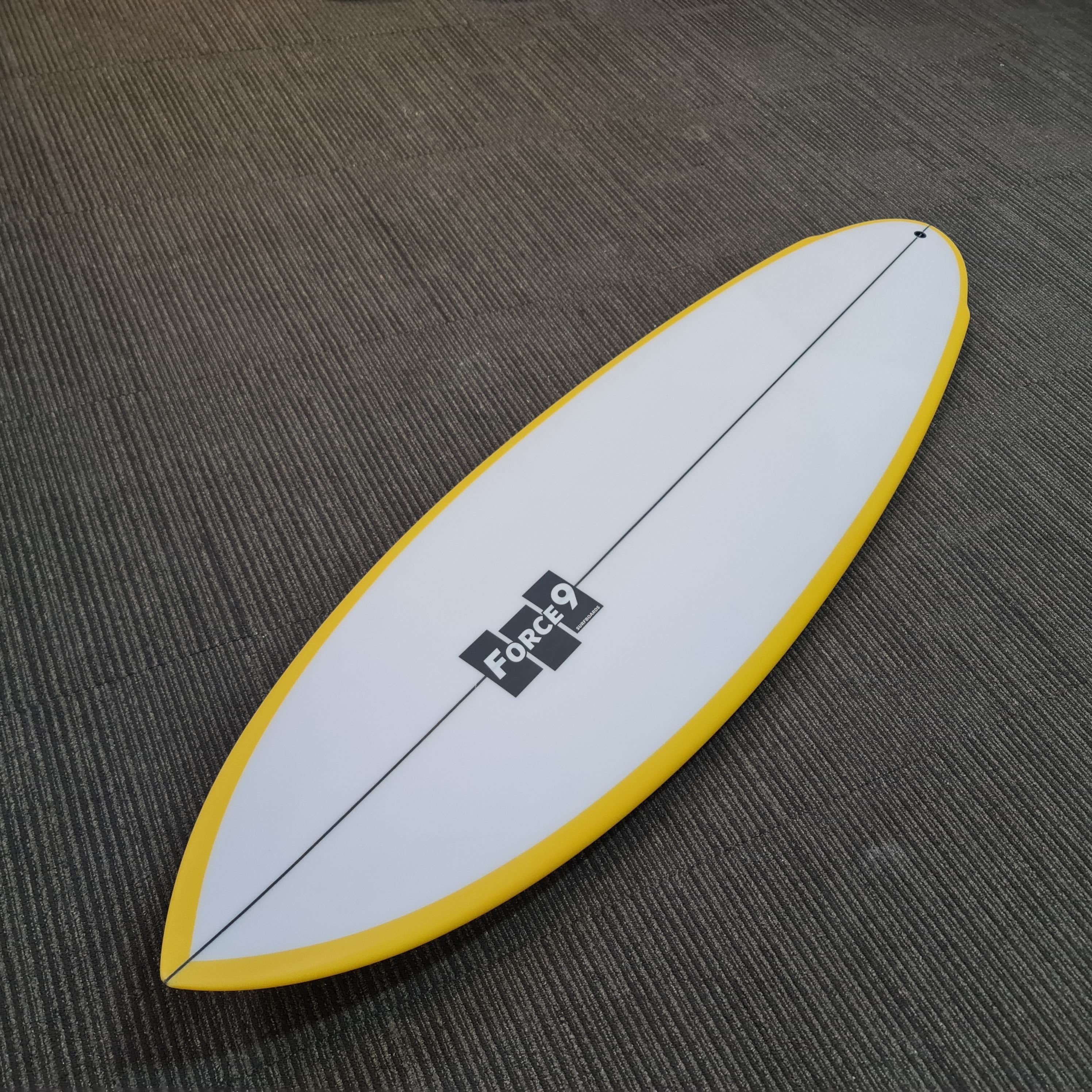 Performance everyday twin fin with trailer option with a flatter rocker and more volume in the rails for speed and flow through turns.
